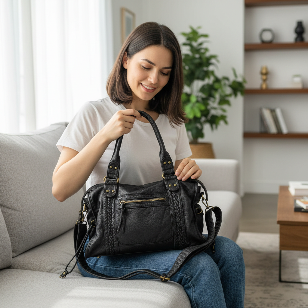 Cuir vintage lavé exclusif, finitions soignées, capacité optimale sans compromettre le style